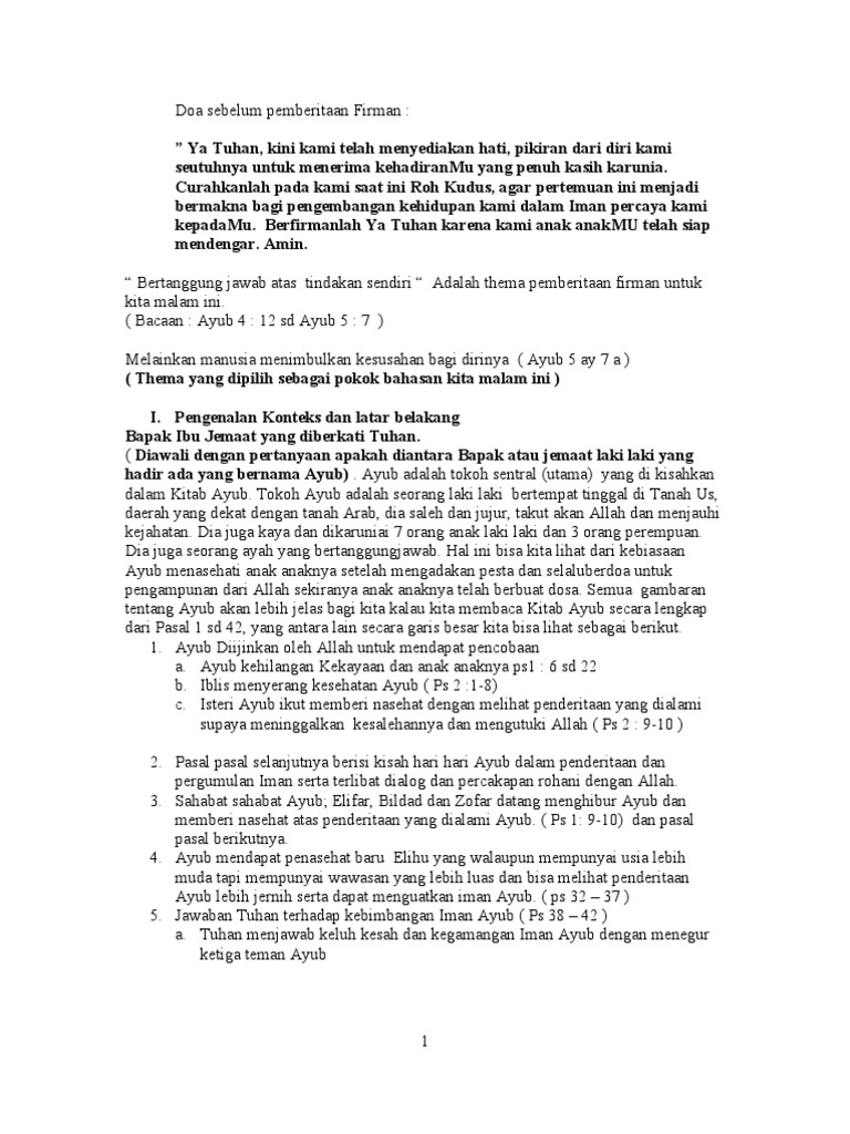 DOA EPIKLESE PEMBACAAN ALKITAB KHOTBAH Pdt.