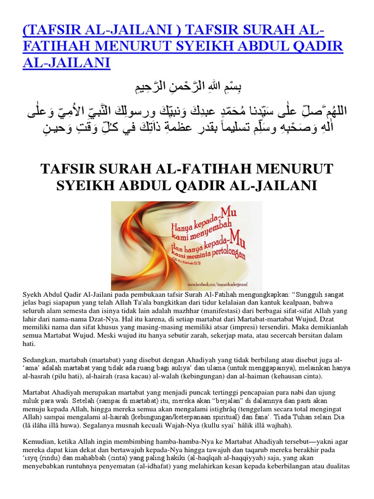 doa al fatihah syekh abdul qodir jaelani. Kisah Syekh Abdul Qadir Al-Jailani ditegur Nabi Muhammad SAW. Doa yang tertera dibawah ini adalah doa Syekh Abdul Jaelani. Bagi orang Islam khususnya Islam Nahdlatul Ulama tentu tidak asing lagi dengan nama salah satu ulama besar Syekh Abdul Qadir Jaelani.