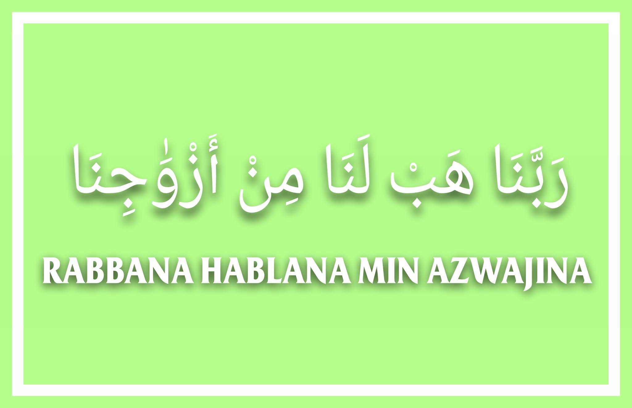 Dec 24 2018 rabbana hablana min azwajina via assalammadaniorid Rabbana hablana min azwajina adalah doa yang mustajab yang selalu dilafalkan oleh Nabi Ibrahim As untuk mendapatkan anak yang sholeh. Rabbana hablana min azwajina wa zurriyatina qurrota ayun wajalna lil muttaqina imama Quran Surah Al. Benefits of Rabbana Hablana Min Azwajina Dua When To Recite Heres a list of benefits from reciting this dua.