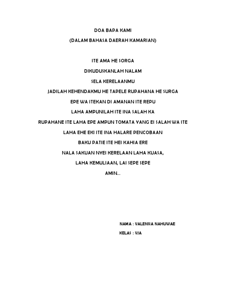 Awesome Doa Bapa Kami Bahasa Nias 9+