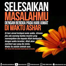 Pernah membicarakan hari jumat kemudian ia bersabda. -Doa Penyejuk Hati Penenang Jiwa -Doa Dan Amalan Murah Rezeki -Doa Pembuka Majlis Lengkap -Doa Selamat Lengkap -Doa Nurbuat Dan Keistimewaanya -Kumpulan Doa Sukses Dunia Akhirat -Doa Menyambut Datangnya Bulan Suci Ramadhan -Doa-Doa Setelah Shalat -Doa. Jumat termasuk hari yang dimuliakan.