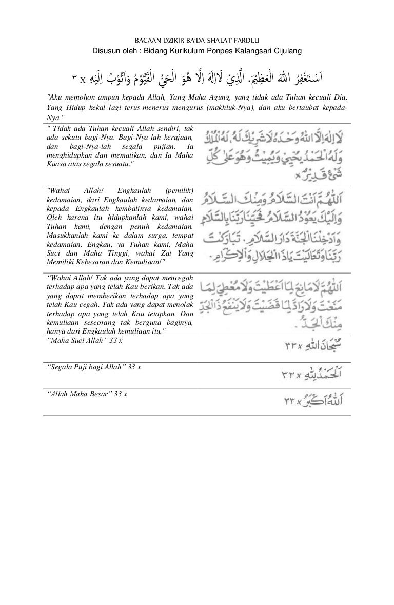 Mar 11 2020 Bacaan Doa dan Dzikir Setelah Sholat Fardhu Lengkap Beserta Artinya Kastolani. Berikut bacaan doa dan dzikir sesudah sholat. Tindakan Rasulullah ini tersirat dalam hadist Bukhari-Muslim yang dikemukanan oleh Ibnu Abbas Ra.