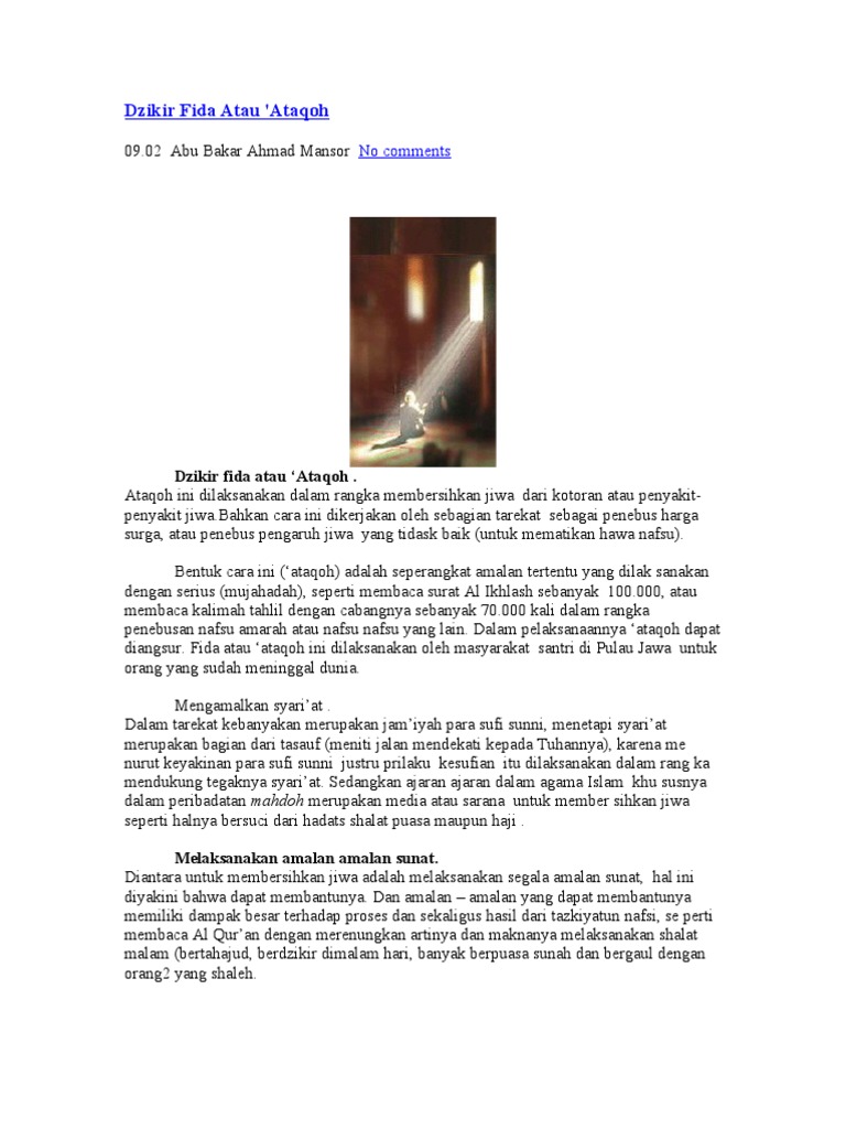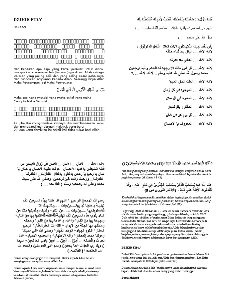 Dengan demikian dzikir fida adalah upaya untuk memohonkan ampunan kepada Allah Swt. Beberapa rujukan kitab yang menjelaskan tentang DZIKIR FIDAA Dzikir Fida adalah dzikir untuk memohon kepada Allah agar diselamatkan dari api neraka baik untuk diri sendiri ataupun diperuntukkan pada orang lain yang telah meninggal. Pondok pesantren roudlotul hidayah bandar sribhawono lampung timur dzikir fida kubro yang di laksanakan di masyarakat sribhawaono yang di ikuti oleh santri.