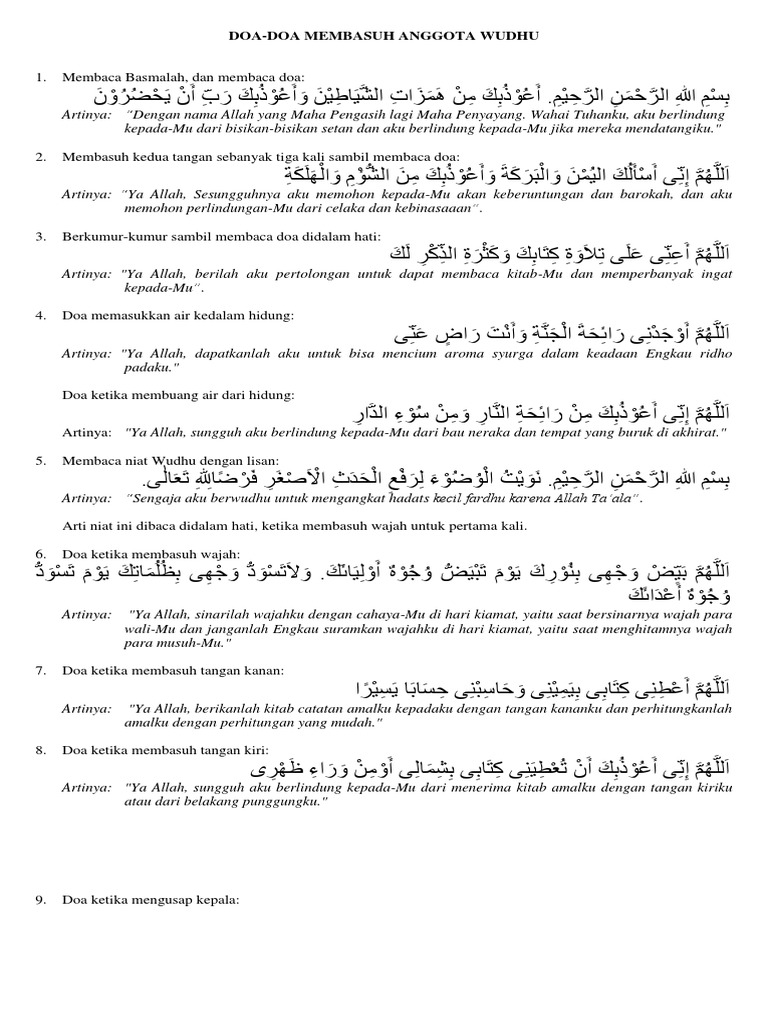 Oct 09 2020 Doa Wudhu Wudhu adalah membersihkan diri dari hadats kecil baik untuk mendirikan sholat maupun mengerjakan perintah Alloh diluar sholat yaitu misalnya bekerja mencari rezeki yang halal. Karena biasanya topik pembahasan berkisar pada pilar-pilar yang membatalkan wudhu dan sunnah yang terdapat dalam wudhu. Bahkan sahabat nabi bilal pun sandalnya pernah ada di surga meskipun bilal masih ada di dunia di.
