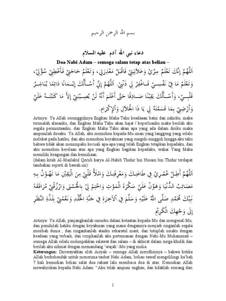 doa hajat nabi adam.