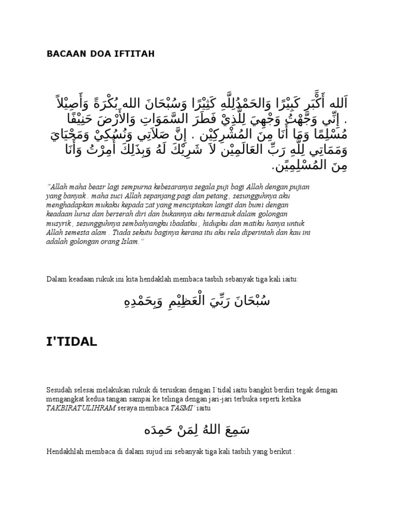 Every prayer starts with a Takbiratul-Ihram after which we leave all of our worldly matters and give our undivided attention to the prayer. Itidal atau itidal setelah bangkit dari rukuk. Seperti doa iftitah di atas doa iftitah ini awalnya juga dibaca oleh seorang sahabat.