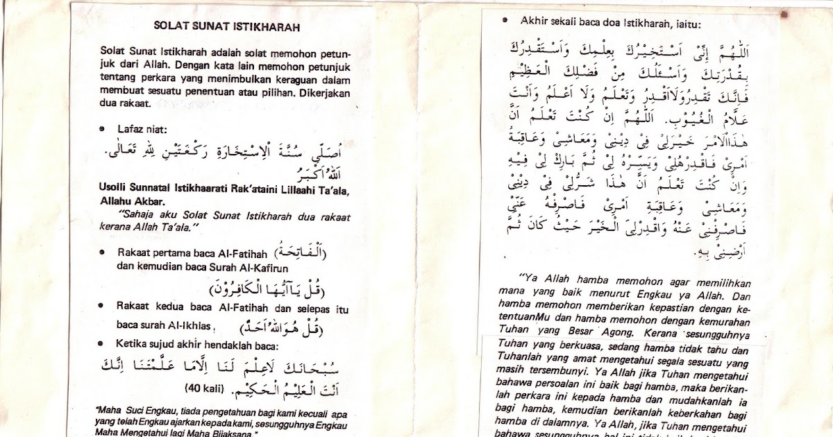 Mudah-mudahan tulisan berikut ini bisa jadi jalan keluarnya. Sedangkan yang wajib adalah niat didalam hati bersamaan dengan mengangkat tangan pada saat takbirotul ihram. Shalat istikharah adalah shalat sunnah yang dikerjakan ketika seseorang hendak memohon petunjuk kepada Allah untuk menentukan keputusan yang benar ketika dihadapkan kepada beberapa pilihan keputusan.