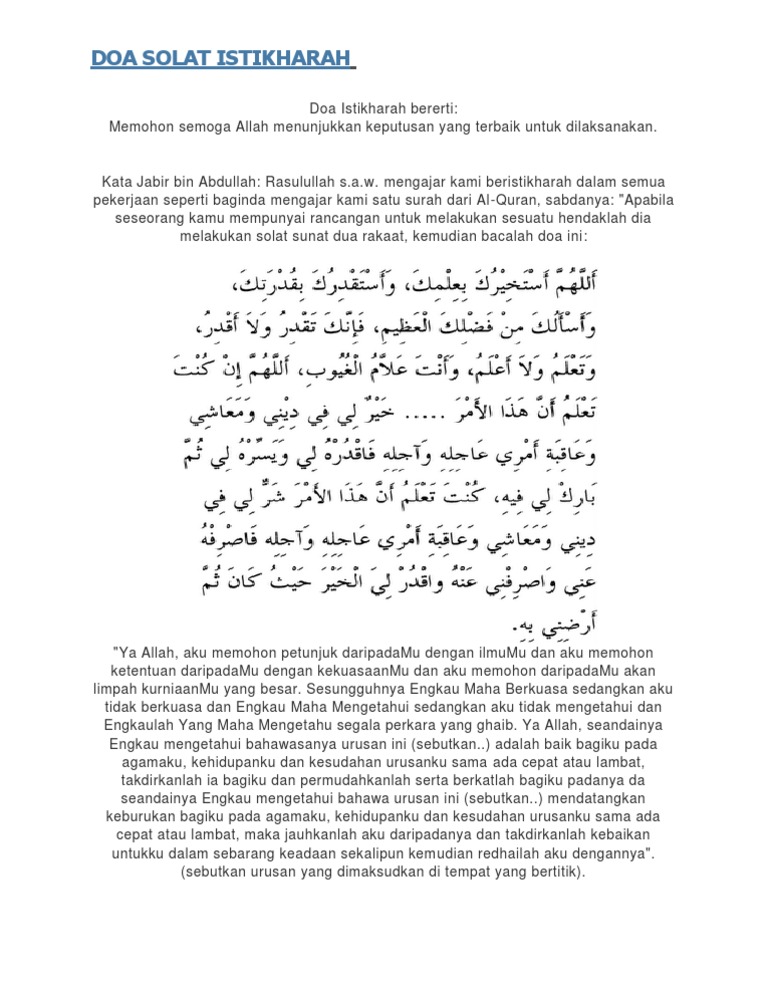 Adapun doa istikharah InsyAllah mustajabah silahkan dimak di bawah. Shalat sunnah Istikharah adalah salah satu amalan yang dianjurkan oleh nabi Muhammad SAW. Mengapa solat Istikharah dan doa Istikharah.