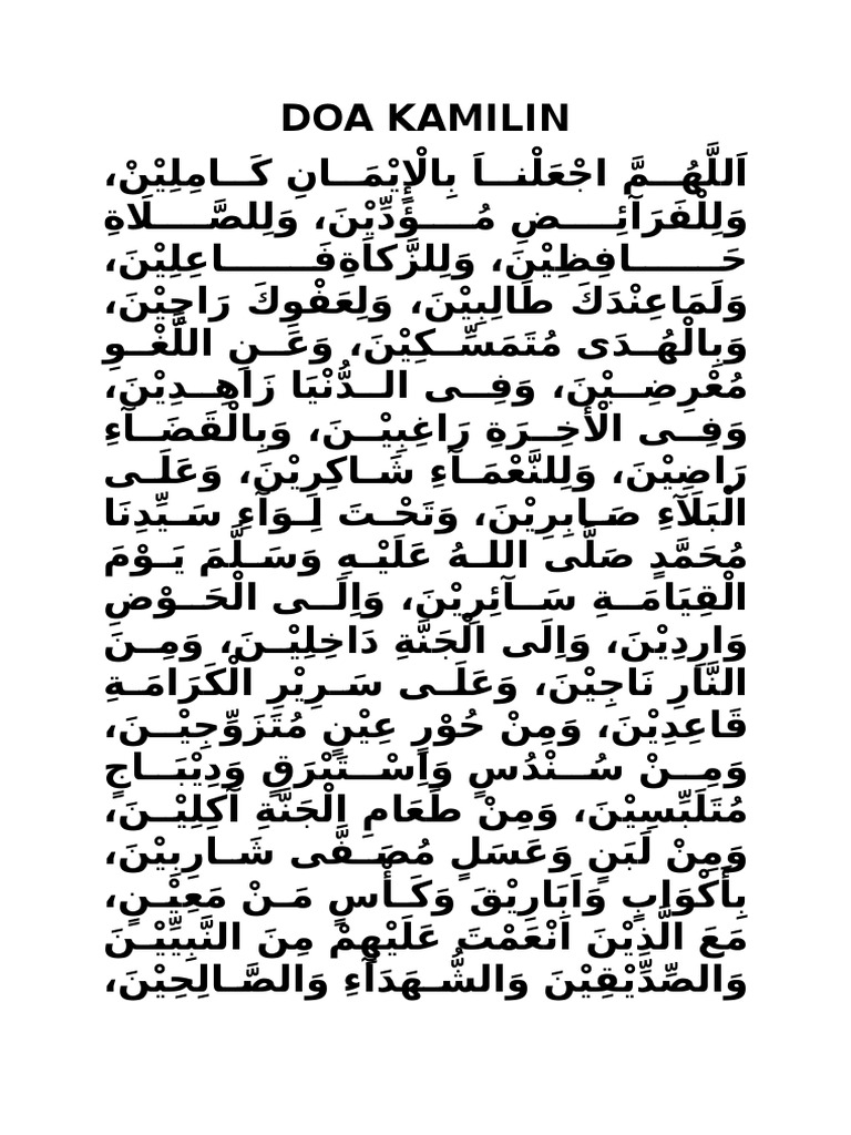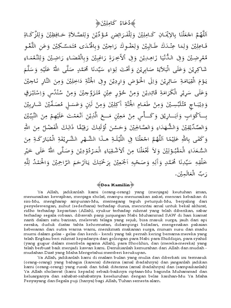 Doa kamilin bahasa Indonesia. Selain itu barang siapa yang mengamalkannya insya Allah akan mendapat limpahan pahala dari Allah SWT di bulan ramadhan. Arti dari doa kamilin ini adalah memohon kepada Allah untuk dijadikan orang yang sempurna imannya.