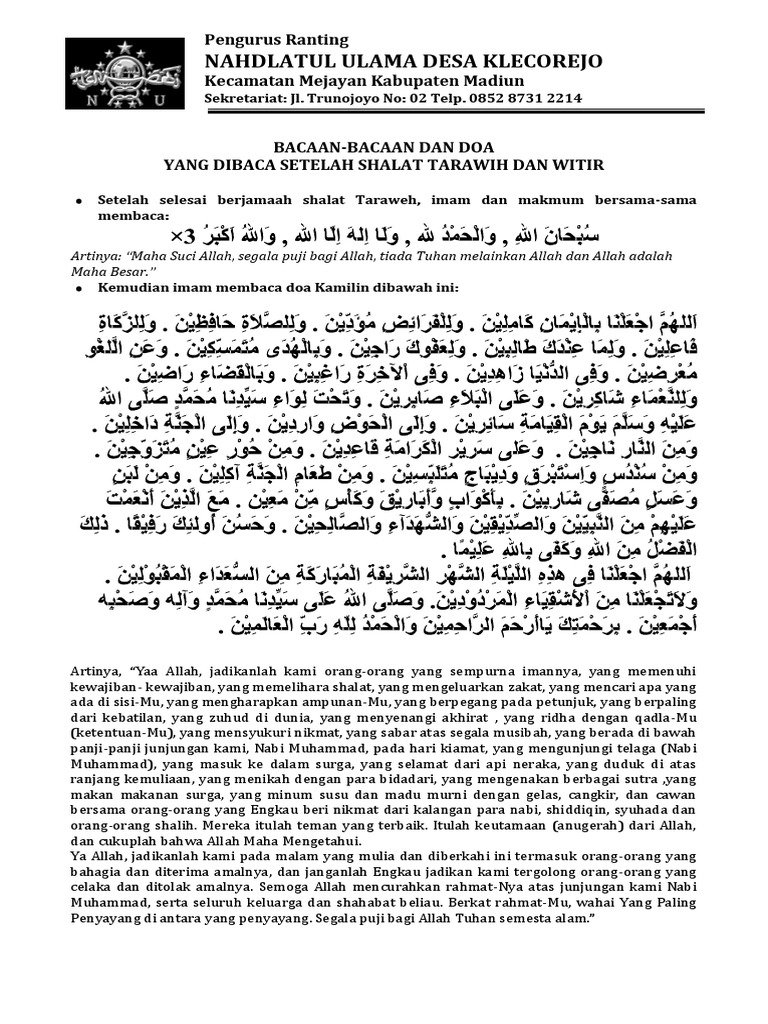 doa kamilin nu pdf. Doa ini biasanya di panjatkan pada malam bulan romadhon. Doa tarawih doa kamilin dan doa witir PDFpdf. Namun saat shalat tarawih sendiri atau jamaah di rumah kita dituntut untuk membaca doa shalat tarawih sendiri doa kamilin dan tidak bisa mengandalkan seorang ustadz.