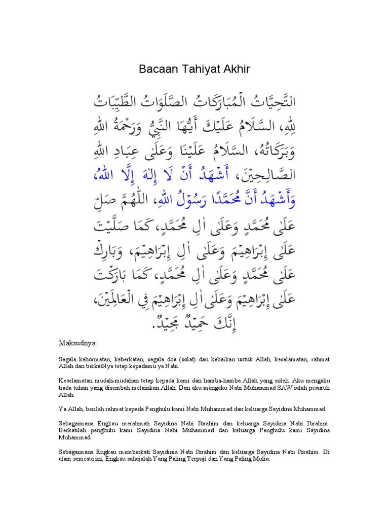 Bacaan Tahiyat Akhir Bacaan Arab Tahiyat Akhir Bacaan Sholat Tahiyatul Doa. Oct 01 2020 Bacaan Tahiyat Akhir Lengkap Sampai Salam Arab Latin dan Terjemahan Bahasa Indonesia. Dikutip dari Kitab Fiqih Islam Wa Adillatuhu jilid karya Prof Wahbah Az Zuhaili doa tahiyat akhir dibolehkan oleh sejumlah ulama setelah membaca sholawat.