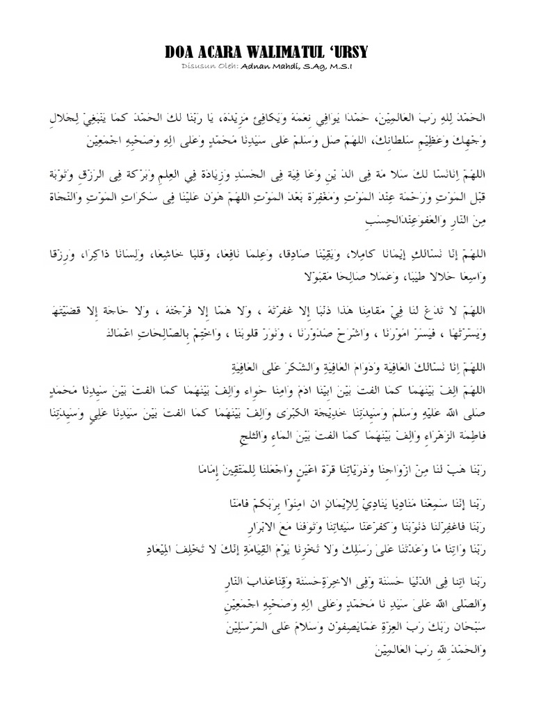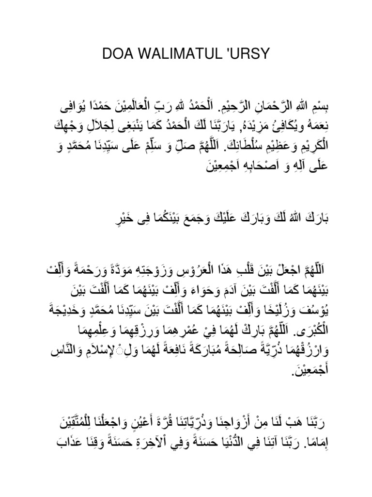 doa lengkap walimatul ursy. Bacaan Doa Wirid setelah Sholat Fardhu Lengkap dengan Arti dan Keutamaannya Makau Kembali Dibanjiri Wisatawan Rekor Tertinggi Selama COVID-19. Hal ini sesuai dengan anjuran Rasulullah Saw dalam sebuah Hadits yang menerangkan bahwa ketika Abdurrahman bib Auf telah menikahi perempuan dengan maskawin senilai satu biji. Dari semua desain yang disebutkan di atas undangan mana yang jadi favorit Anda.