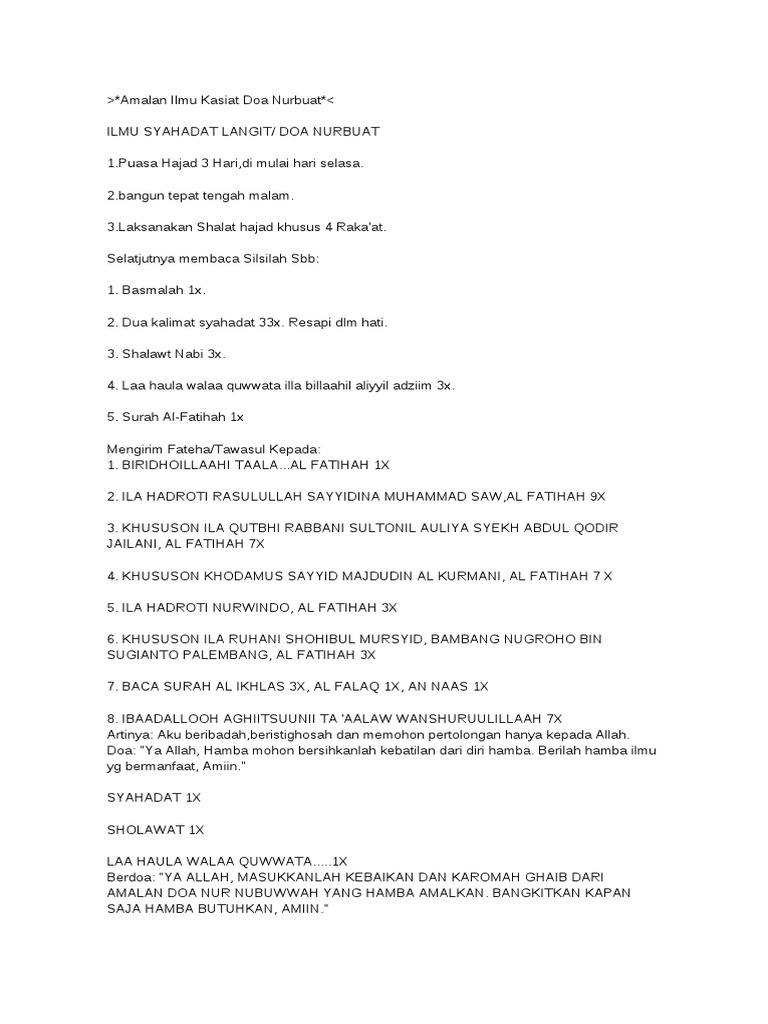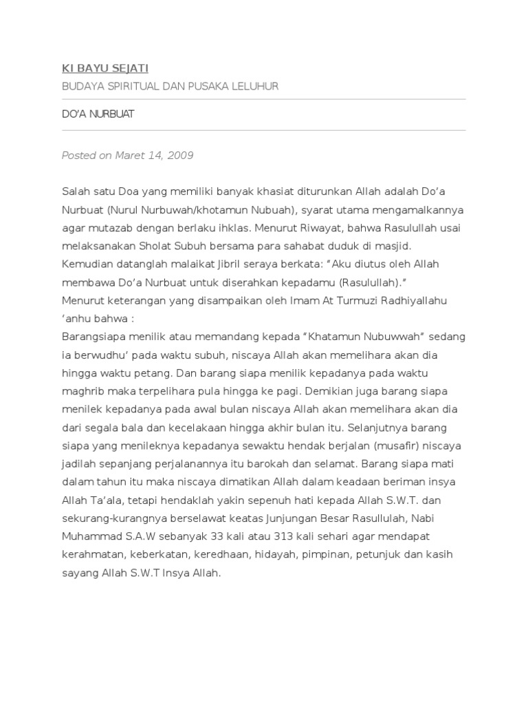Feb 23 2019 Doa Nurbuat Doa nurbuat atau sering juga disebut doa nubuwwah adalah salah satu doa yang memiliki banyak manfaatnya.