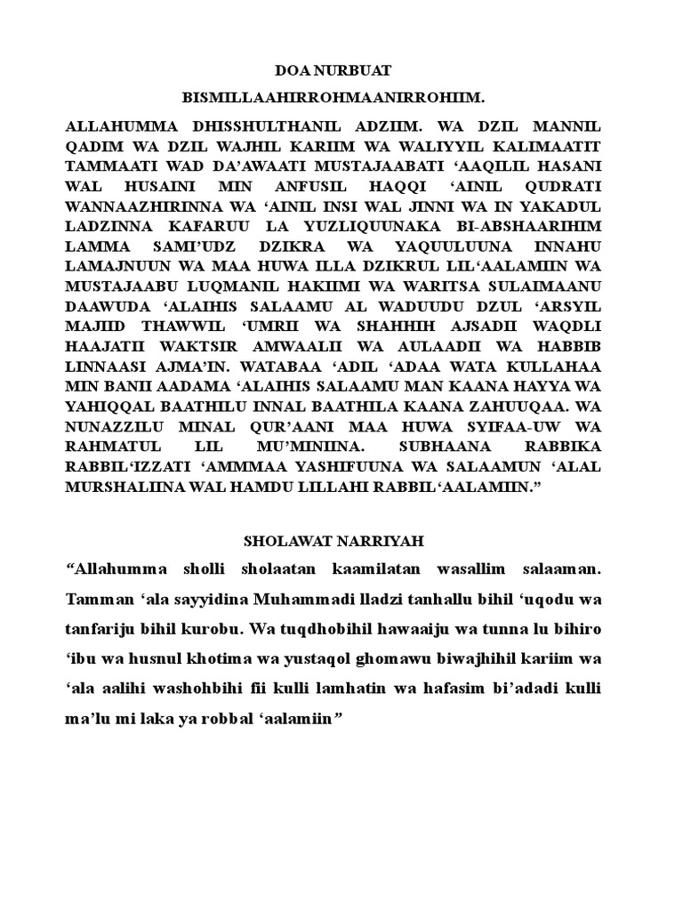 doa nurbuat original.