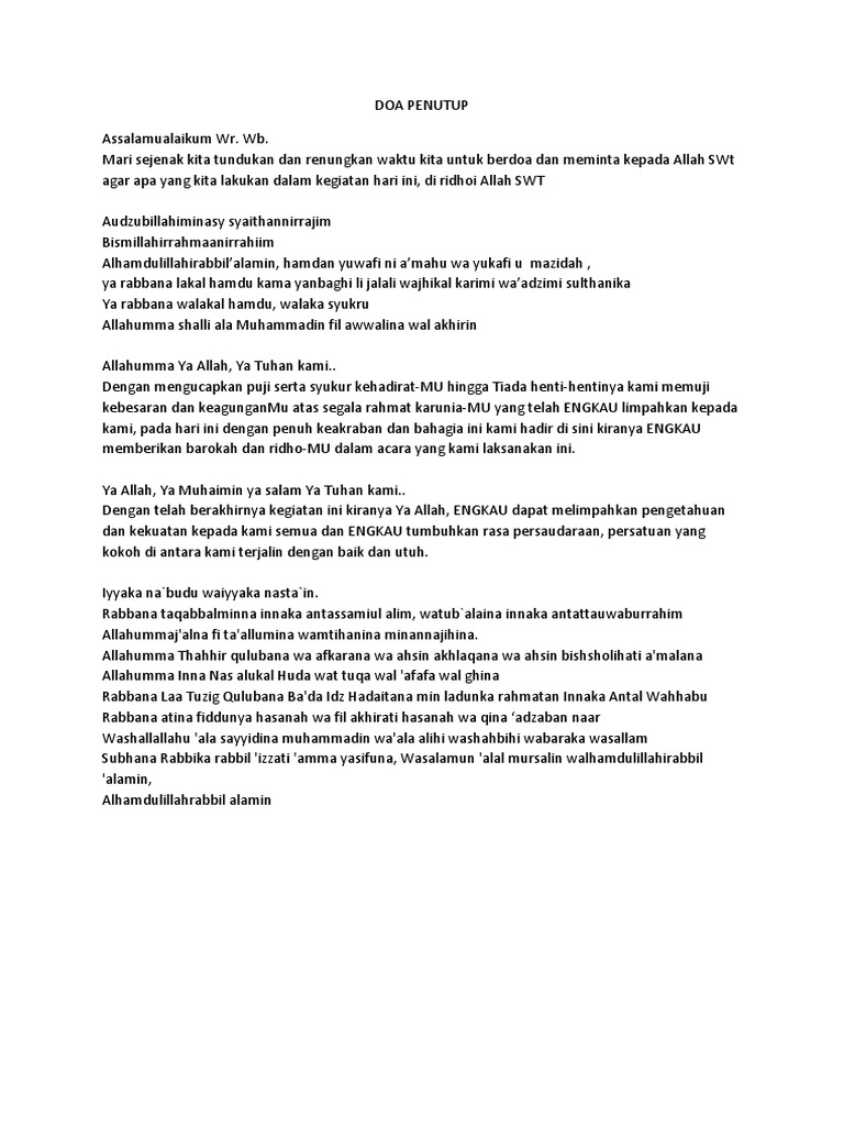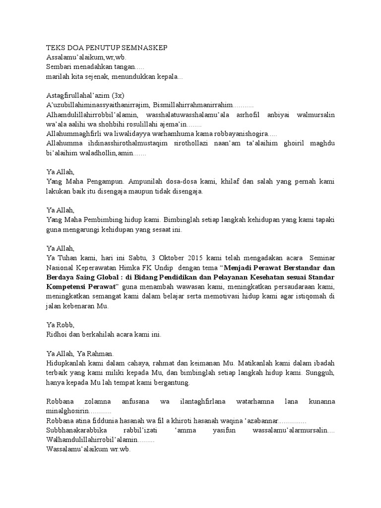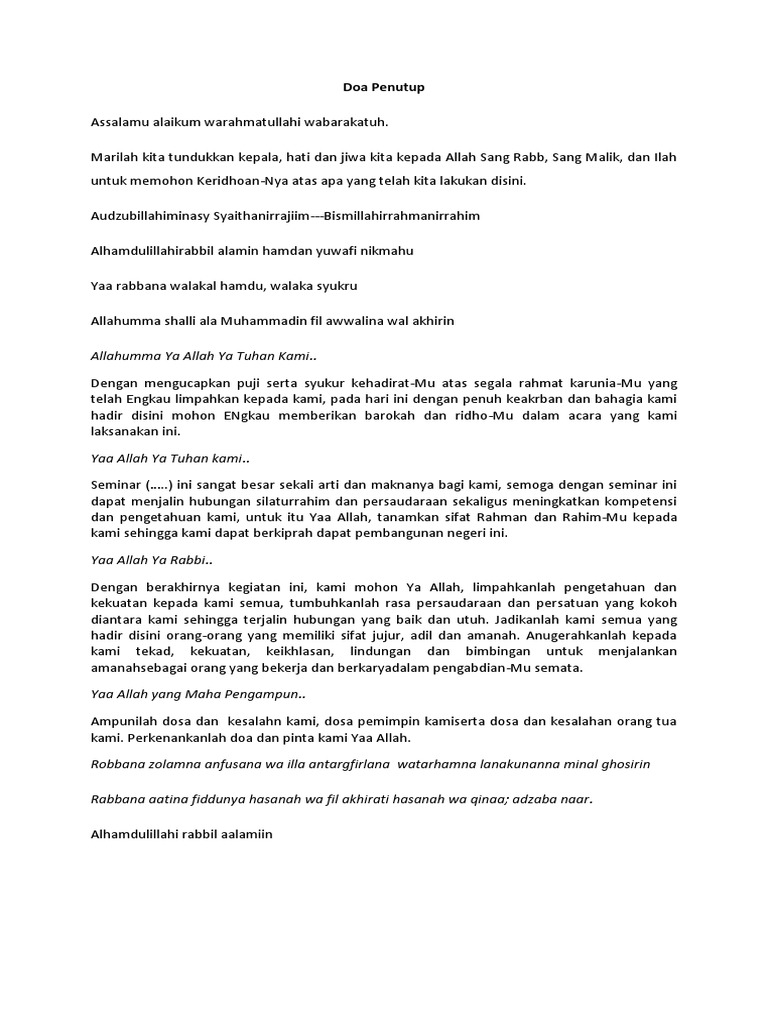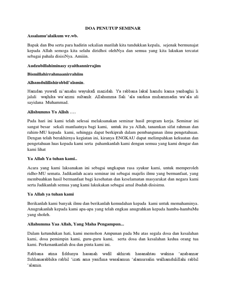 doa penutup acara seminar. Doa pembuka dan penutup acara seminar waytofindout MAY 2ND 2018 - AWAL BULAN APRIL INI SAYA TERLIBAT SEBAGAI PANITIA DALAM SUATU SEMINAR KEFARMASIAN YANG DISELENGGARAKAN OLEH PENGURUS DAERAH HISFARSI JAWA BARAT SELAMA DUA HARI SAAT HARI H SAYA TERLIBAT SEBAGAI PEMBACA DOA PEMBUKA DAN. Dengan membaca doa penutup pasti kita mengharap agar ilmu dan pengetahuan yang kita dapatkan dari sebuah acara dapat kita amalkan dan kita lakukan serta dapat bermanfaat. Bacaan Doa Pembuka dan Doa Penutup Acara Lengkap Pada suatu acara pasti ada waktu dimana akan di mulai dan di akhiri acara tersebut.