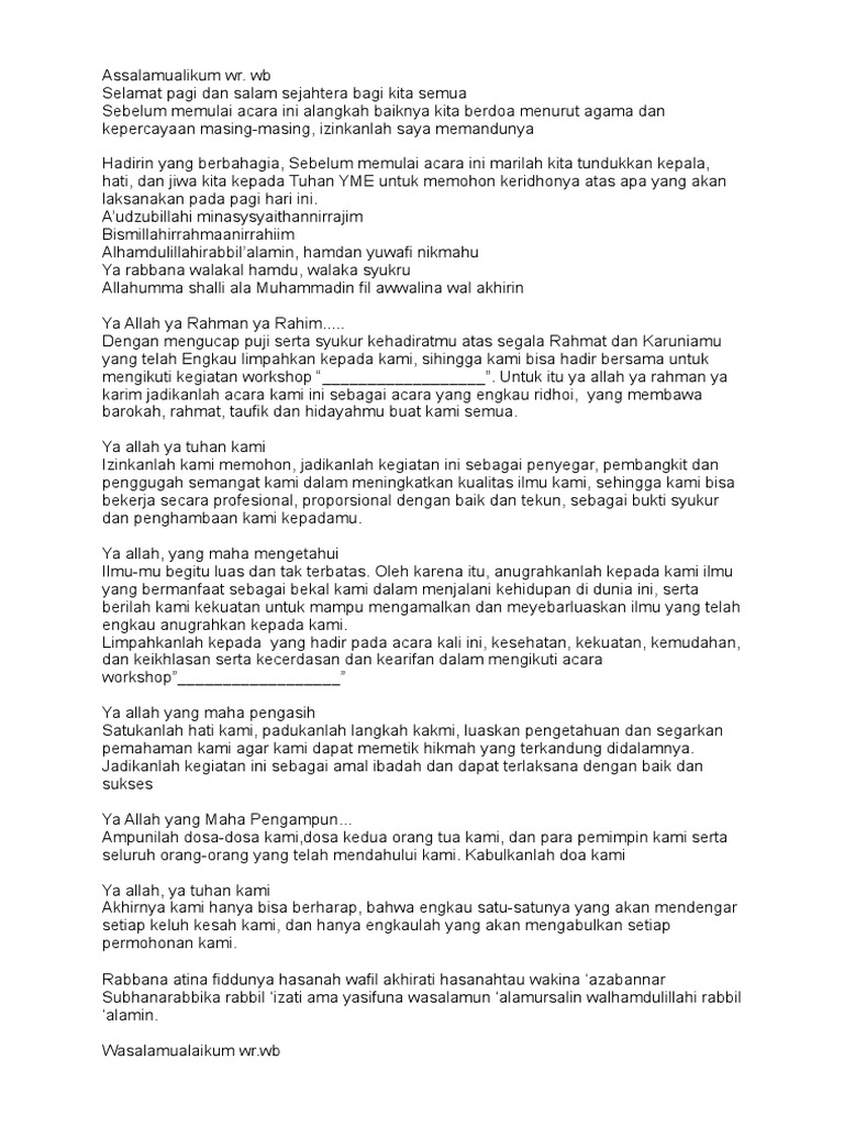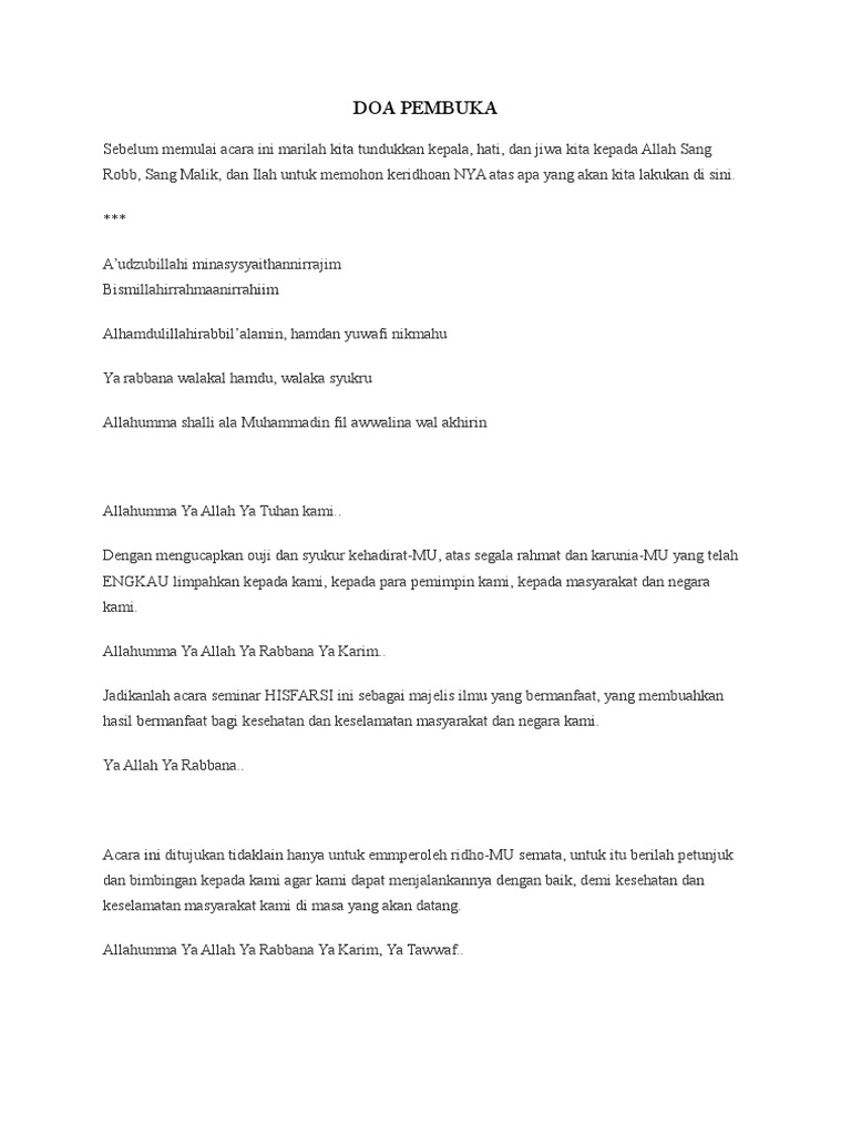 Semoga dengan doa dapat memperlancar sebuah acara dari dimulainya acara hingga berakhirnya acara. Apr 08 2012 Awal bulan April ini saya terlibat sebagai panitia dalam suatu seminar kefarmasian yang diselenggarakan oleh pengurus daerah HISFARSI Jawa Barat selama dua hari. Nov 11 2020 Dalam sebuah pertemuan pada umumnya akan dihadiri oleh para muslimin dan muslimat maka pasti akan ada yang namanya doa pembuka dan doa penutup supaya acara tersebut lancar dan senantiasa.