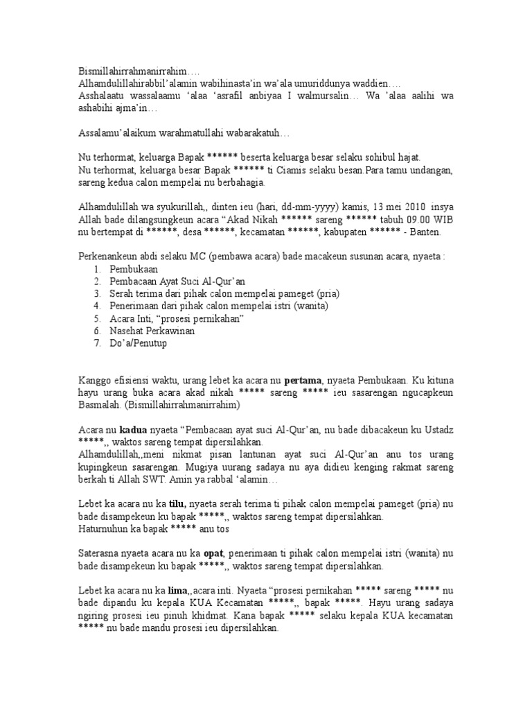 Seorang muslim apa bila mengadakan acara dan kegiatan sebaiknya harus membaca doa di akhir acara atau di awal acara. Pidato Agama Islam. Pidato syukuran rumah dalam bahasa sunda ini dapat dibawakan oleh orang lain selaku mc atau bisa juga dibawakan langsung oleh tuan rumah atau orang yang memiliki rumah baru tersebut.
