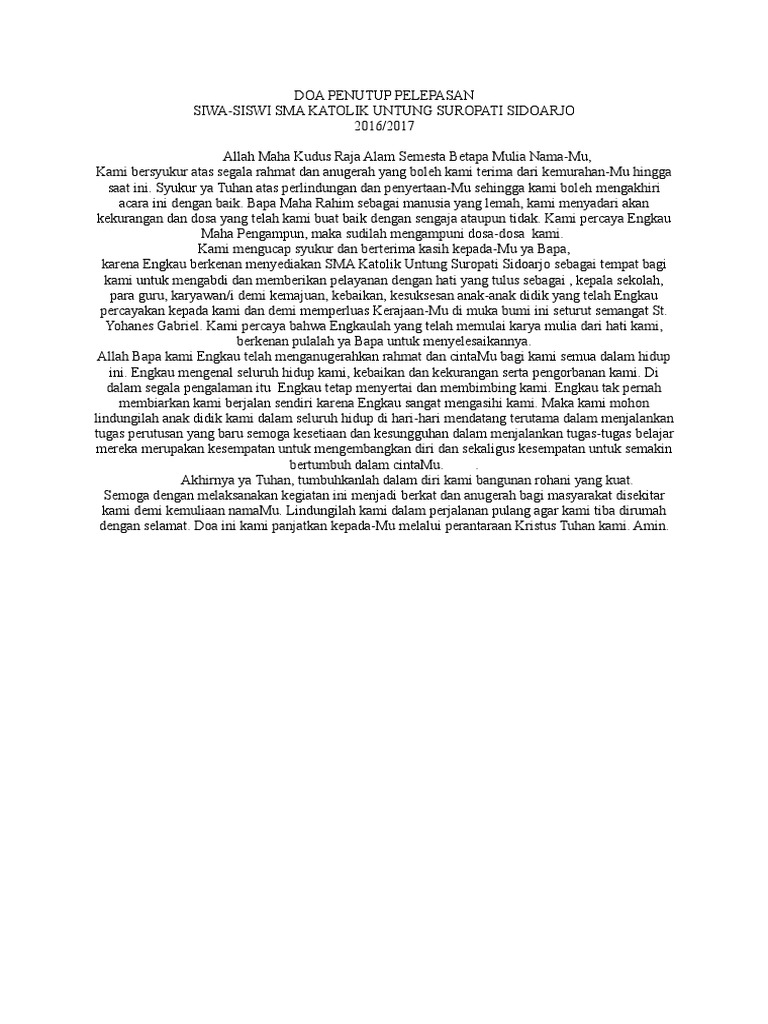 Arsip Doa-Doa Katolik Rosario. Kardinal Suharyo juga berpesan agar umat tidak panik atau cemas berlebihan dan berdoa semoga keadaan lekas menjadi baik kembali. Doa Penutup Pertemuan By Mpg 1650 Doa Penutup Pertemuan.