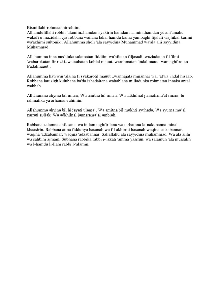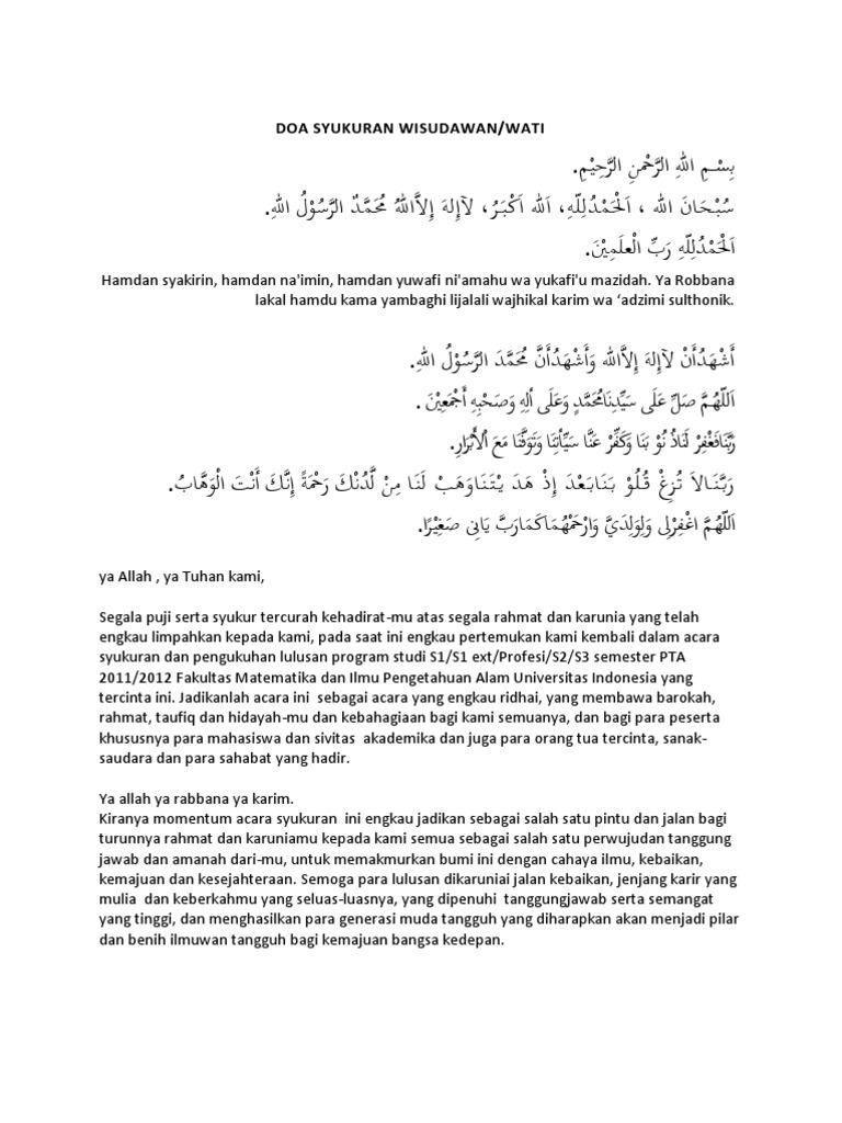 Hamdan yuwaafii niamanhu wayukaafii-u maziidahu. View doadocx from DOA 1 at As-syafiiyah Islamic University. Pembukaan dan Penutup Doa yang benar sesuai sunnah.