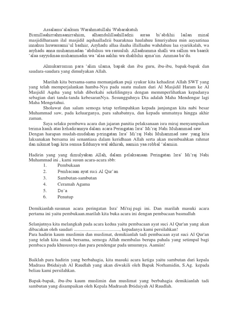 Dalam isra miraj apakah hanya ruh Nabi ataukah ruh dan jasadnya sekaligus. Mar 25 2021 Teks Pembawa Acara Isra Mi Raj Di Masjid Terkait Teks. From Indonesian into Javanese.
