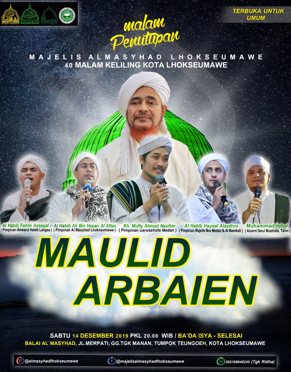 Bagi Jamaah Yang Mempunyai Keluangan Waktu Di Haturkan Kehadirannya. Berkat doa ibu dan ayah beliau juga berkat doa para datuk-datuk beliau terutama datuk beliau RAsullulloh SAW dalam masa 65 tahun belajar di luar negeri Al-Habib Ali telah memperoleh ilmu Islam yang murni luas dan mendalam yang dibawanya kembali ke Indonesia. Doa Selepas Solat Terawih.