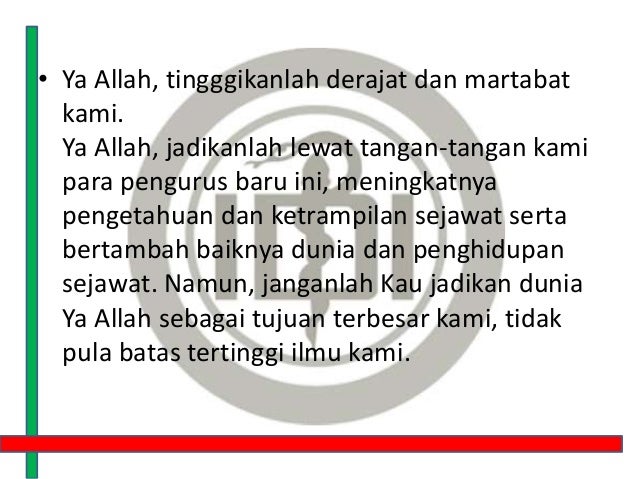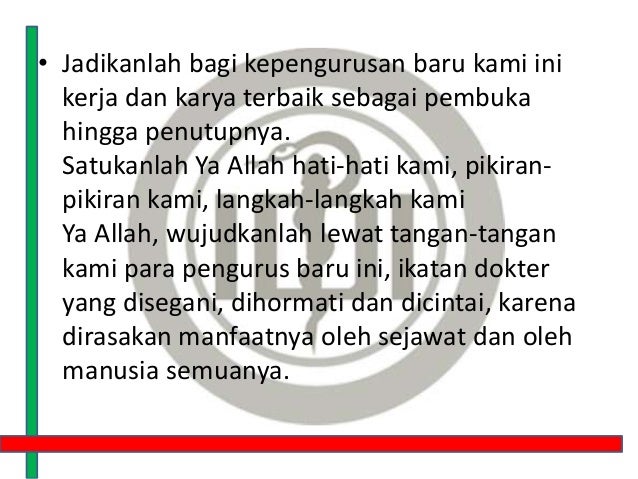 doa penutup pelantikan organisasi. Pejabat struktural dan fungsional. Saipul ANGGARAN DANA KEGIATAN Adapun dana yang di butuhkan untuk melaksanakan kegiatan pelantikan pengurus Karang Taruna Tiga serumpun adalah sebesar Rp. Doa Pelantikan IDI Ya Allah Ya Tuhan kami Dihari yang penuh berkah ini Kami bermunajat menghadap kehadiratMu Mempersembahkan Rasa syukur yang se dalam-dalamnya Atas berbagai nikmat Yang telah engkau curahkan kepada kami Ya Allah Anugerahkanlah Pelantikan Pengurus IDI yang baru ini dengan barokah dan ridha di sisiMu.