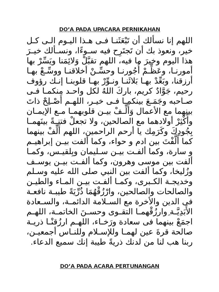 Nov 13 2019 Doa Pernikahan Adalah doa yang dibacakan pada saat dua orang sedang melangsungkan pernikahannya.
