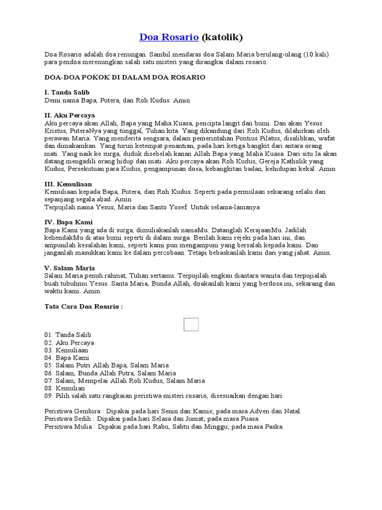 doa rosario lengkap pdf. Doa Rosario beserta Renungan. A short summary of this paper. Doa rosario menjadi salah satu doa yang disukai oleh kita umat Katolik adalah karena.