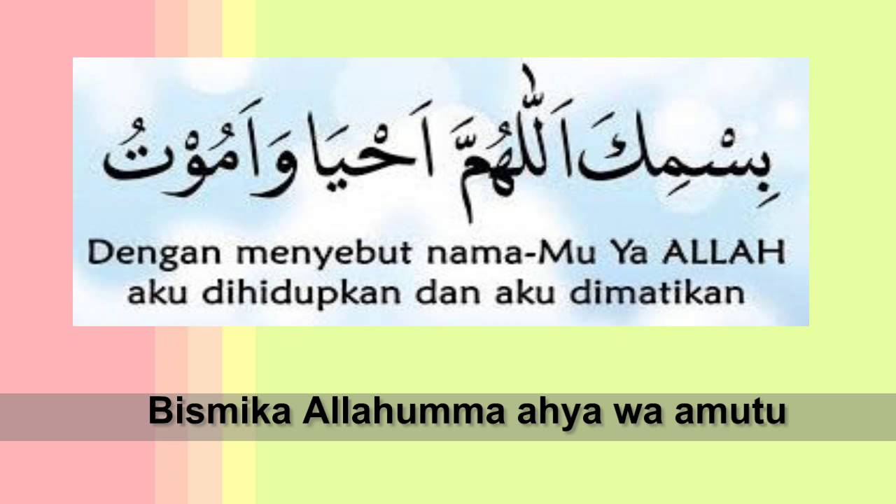 Bismika allahumma ahyaa wa amuut Dahulu baginda Rasulullah Muhammad SAW selalu membaca doa hendak tidur tersebut. Caranya ialah dengan menempelkan tangan kanan di bawah pipi wajahnya lalu membaca doa sebelum tidur ini. Alhamdulillah diiringi rasa syukur buku.