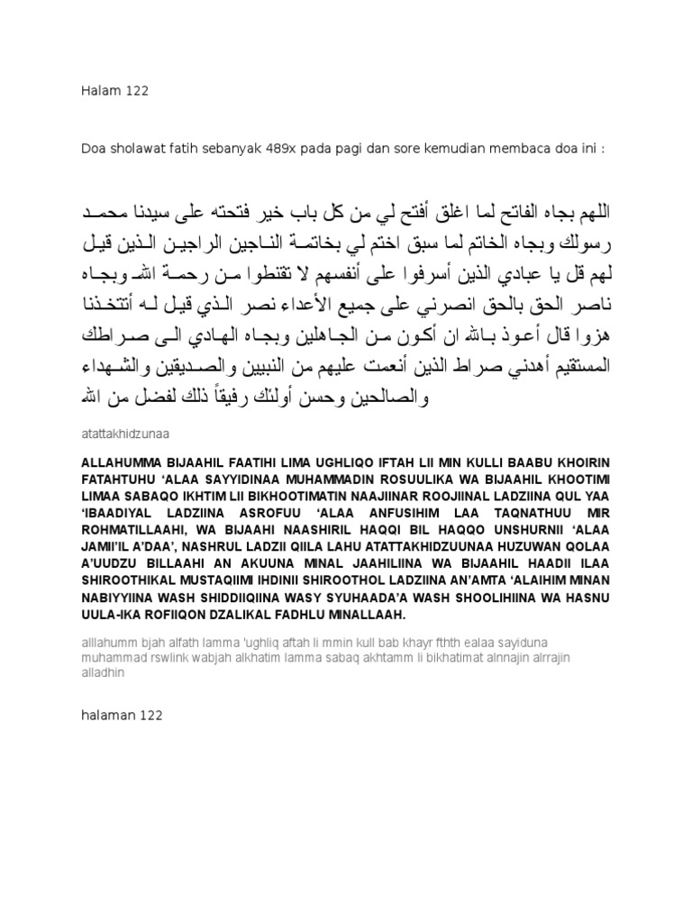doa setelah shalawat fatih. Shalawat Fatih Amalan setelah Shalat 5 Waktu. بسم الله الرحمن الرحيم اقرأ باسم ربك الذي خلق iqra bi-ismi rabbika alladzii khalaqa Bacalah dengan menyebut nama Tuhanmu Yang menciptakan خلق الإنسان من علق khalaqa al-insaana min alaqinDia telah menciptakan manusia dari segumpal darah. Sholawat Fatih Sholawat Fatih adalah salah satu sholawat kepada Nabi yang sangat di anjurkan untuk di baca.