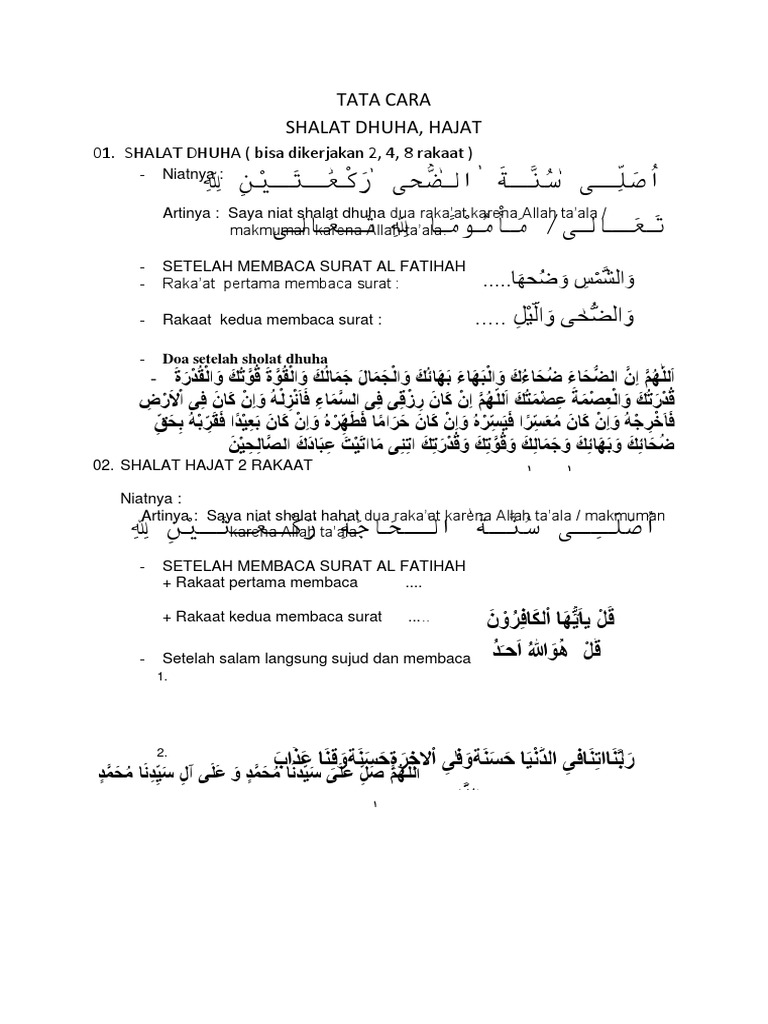 Niat Doa Dan Tata Cara Perakteknya Pada kesempatan kali ini kami fiqihcoid akan menuliskan tentang Shalat Hadiah. Setelah itu dilanjutkan dengan bacaan dzikir dan bacaan doa setelah sholat dhuha. Daftar Isi 1 Shalat Hadiah.