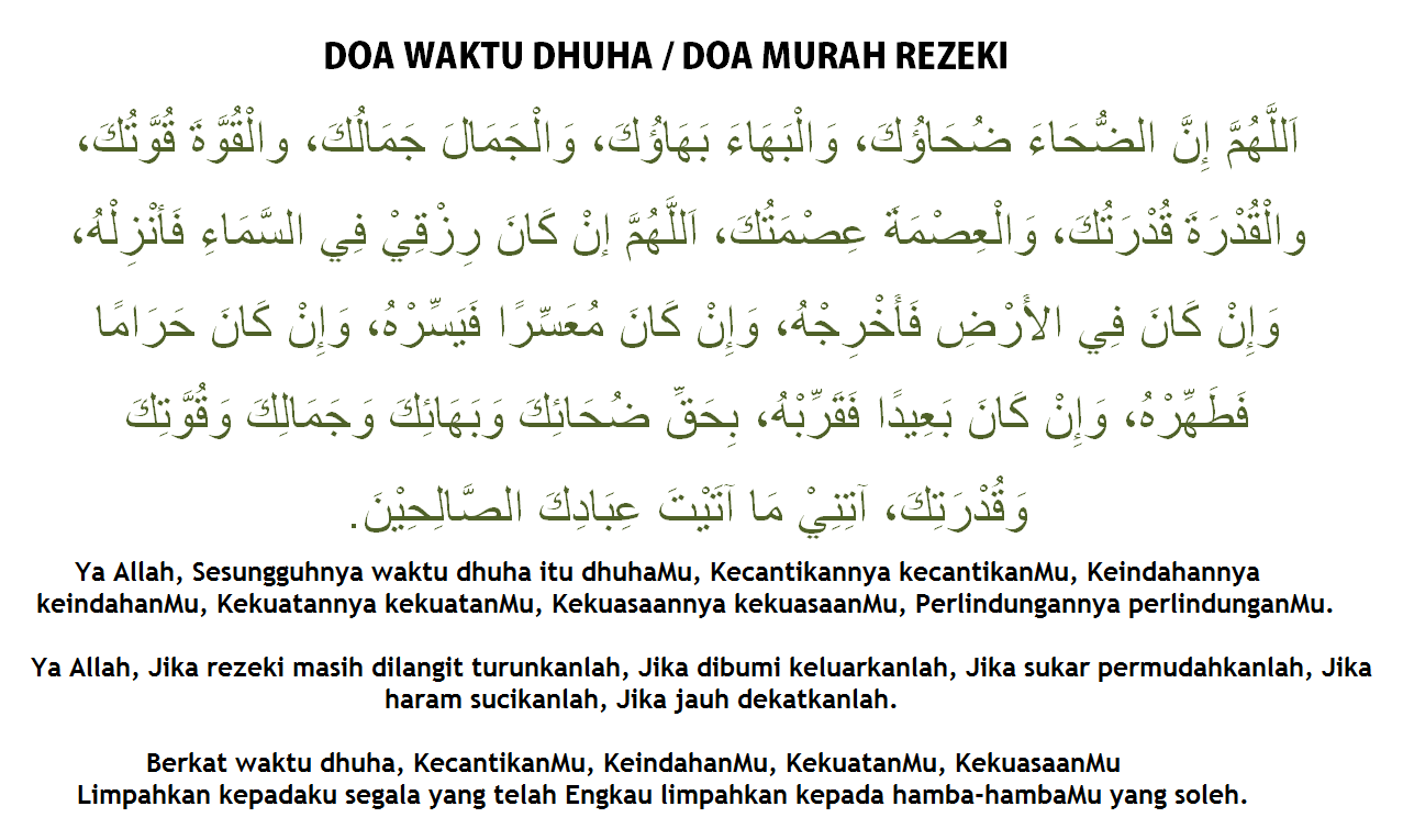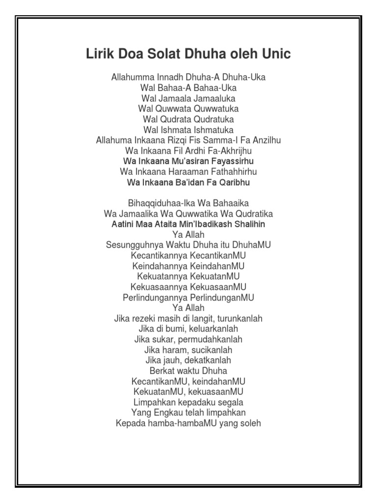 Solat Sunat Dhuha dilakukan untuk menghapuskan dosa dan agar murah rezeki. Share this video to people who loves you people who you cares someone so. Jul 01 2018 doa dhuha from doa album by unic copyright.