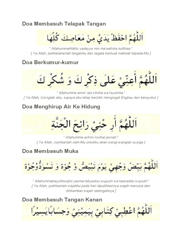 Bacaan doa doa wudhu yang benar islam lengkap beserta latinnya ataupun download bacaan wudhu mp3 begitu juga dengan doa wudhu lengkap pdf dan doa. Panduan Rahsia Cara Berwuduk Air Yg Boleh dan tak boleh. Dengan demikian wudhu yang kita lakukan semakin bertambah kualitas ketaatannya berikut ini akan kami paparkan beberapa doa yang menyertai gerakan wudhu sebagaimana telah disampaikan oleh kitab karya Syekh Muhyiddin Abu Zakaria Yahya bin Syaraf al-Nawawi al-Dimasyqi Al-Adzkar al-Muntakhabah min Kalmi Sayyidil Abrr menulis sejumlah doa yang menyertai setiap Gerakan wudhu.
