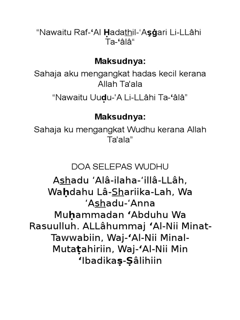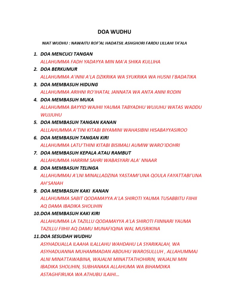 4 Niat dan Doa Mandi Wajib atau Mandi Besar atau Mandi Junub. Tata cara Wudhu Lengkap Beserta Doa Dan Bacaan Latin Wudhu merupakan hal yang wajib dilakukan sebelum mengerjakan sholat. Saya niat berwudhu untuk menghilangkan hadast kecil fardu wajib karena Allah taala.
