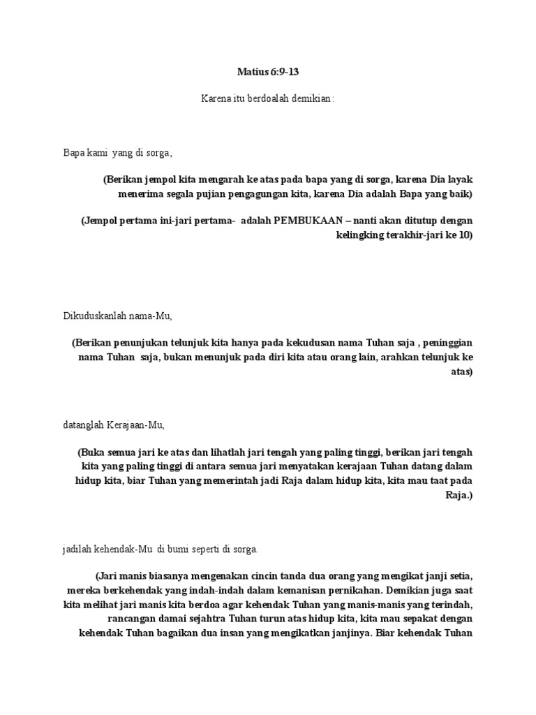 Doa bapa kami doa bapa kami dalam bahasa indonesia. Bagi umat Kristen Doa Bapa Kami merupakan pedoman dalam berdoa. Dan janganlah membawa kami.