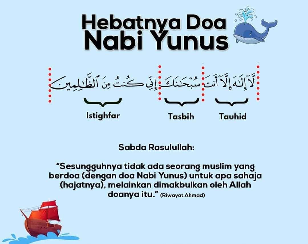 Sertai atau Log Masuk ke Facebook E-mel atau Telefon. Doa Nabi Yunus atau juga dikenali sebagai zikir Nabi Yunus merupakan zikir yang dibaca oleh Nabi Yunus AS. Dahsyatnya Fadhilah di Balik Doa Nabi Yunus.
