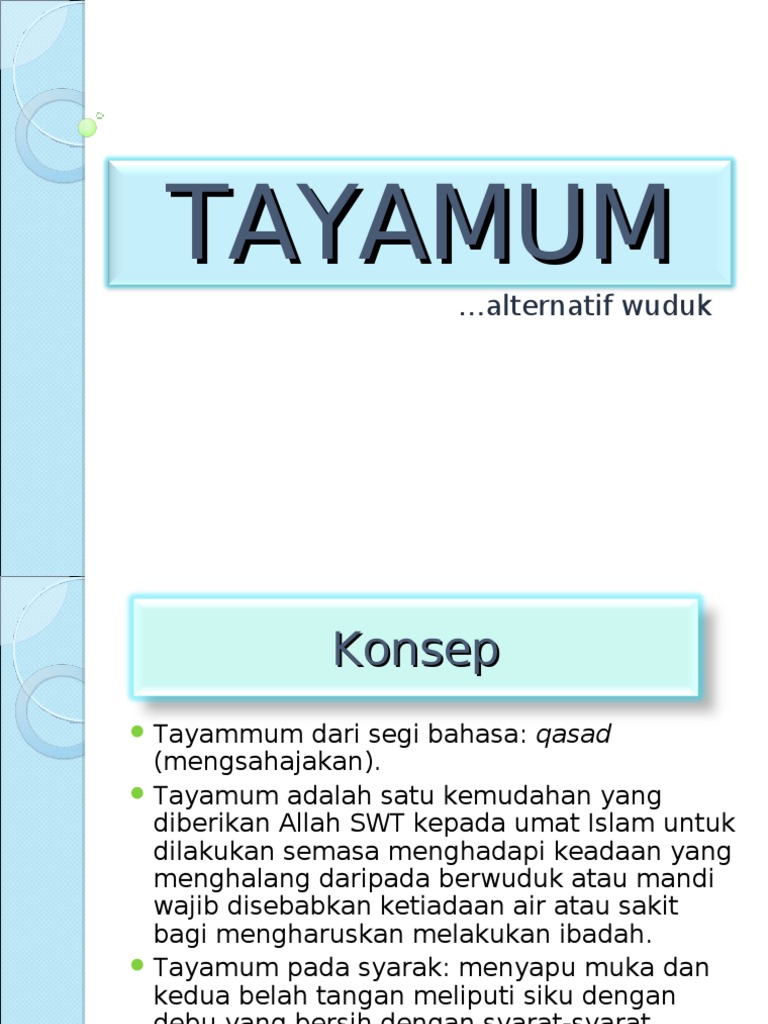 Beliau berkata Saya mimpi sampai keluar mani pada suau malam yang sangat dingin. Tayamum di segi syarak adalah menggunakan tanah yang bersih dan suci seperti debu atau pasir bagi menyapu muka dan tangan untuk mengangkat hadas dengan persyaratan syarak sebagai pengganti wuduk atau mandi wajib mandi junub. Diawali membaca doa niat mandi wajib.