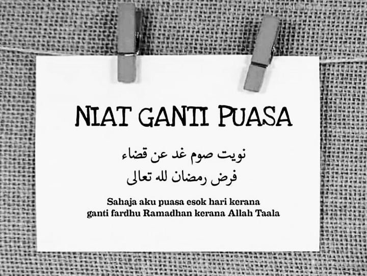 Berikut ini bacaan niat Puasa Qadha atau puasa ganti puasa Ramadhan. Kamu harus berniat dulu sebelum menjalankan ibadah puasa keesokan harinya. Alhamdulillah segala puji bagi Allah Taala selawat dan salam.